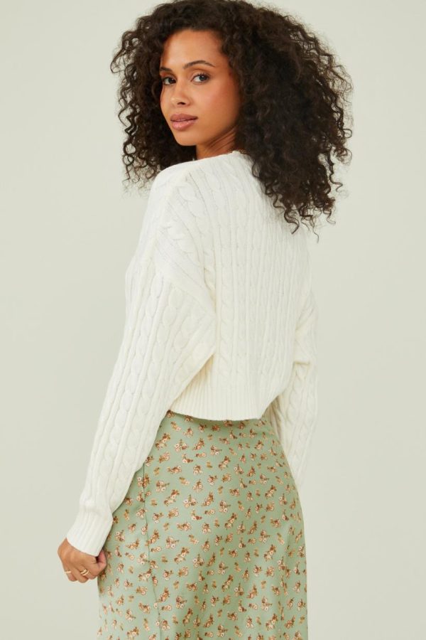 Get cozy in this cropped Charlie pullover. With its relaxed fit and timeless cable-knit detailing, this sweater will be a staple in your close this Autumn season!
