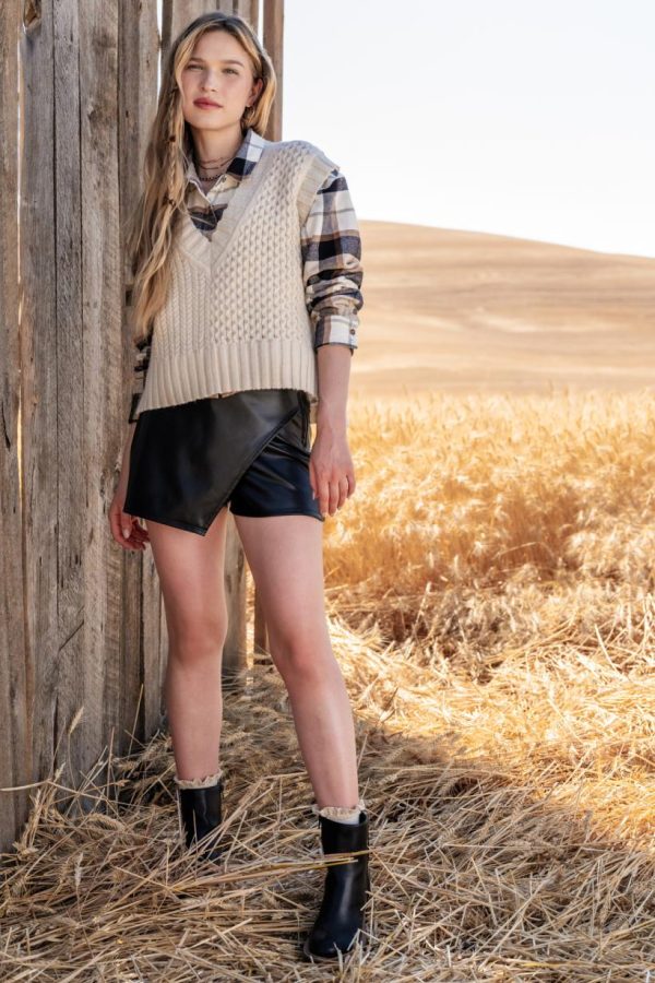 The v-neck design adds a touch of classic style, while the chunky cable knit texture exudes coziness. Its generous fit ensures comfort and versatility, making it a perfect layering piece for any occasion. Embrace chilly days outdoors or simply layer for extra comfort indoors.