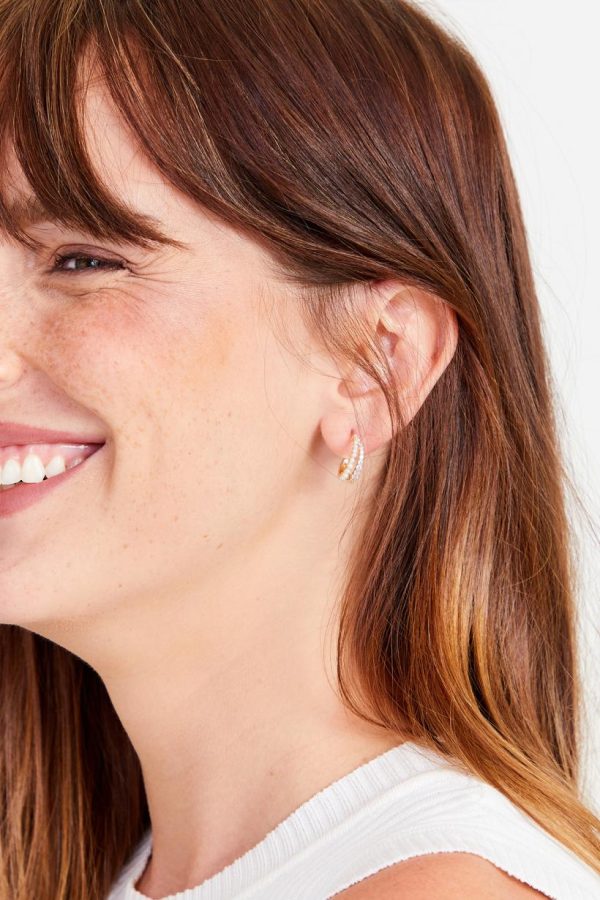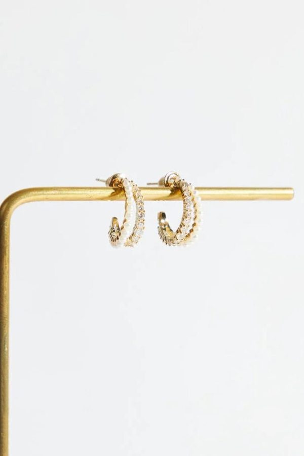 Elevate your look with these 18k gold dipped hoop earrings! With a layer of pearls and a layer of rhinestones, you get the best of both worlds with this dainty earring!