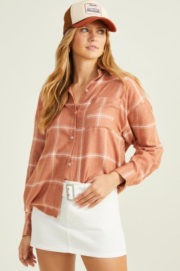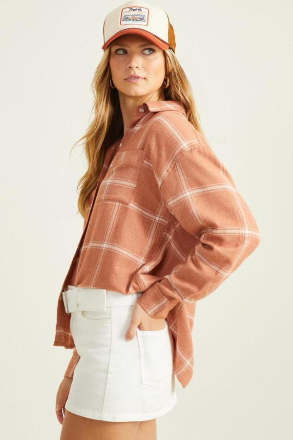Women Fiona Plaid Button Up Flannel | Altar’d State Blouses