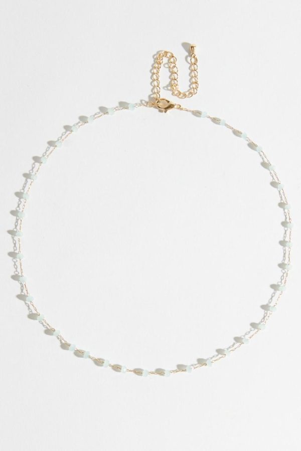GLASS BEADS ARE AN EASY ACCESSORY THAT MAKE A BIG STATEMENT. THIS TURQUOISE CHOKER IS THE PERFECT LAYER TO ADD A POP OF COLOR TO YOUR JEWELRY LOOK. LAYER THIS UP WITH YOUR FAVORITE PIECES TO COMPLETE YOUR OUTFIT.