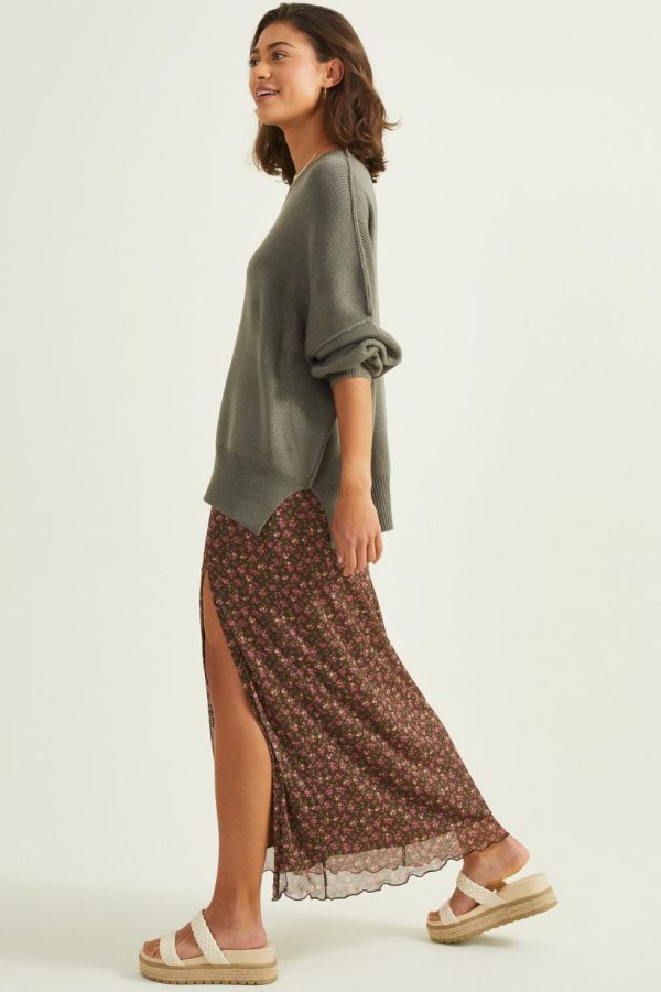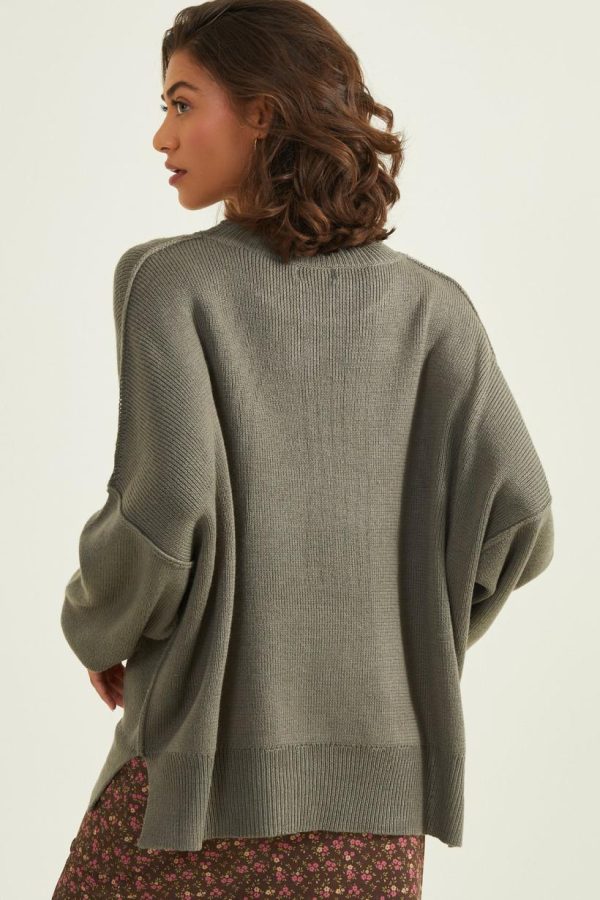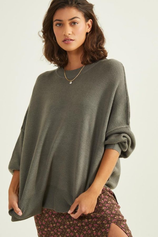 Find your comfort and style with our long-sleeved lightweight oversized pullover sweater, featuring ribbed fabric and a side slit for added movement. A versatile addition to your wardrobe, perfect for effortlessly elevating your everyday look.