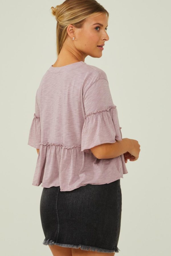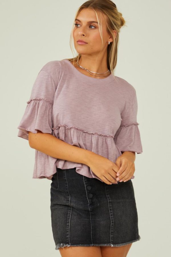A feminine ruffled top, perfect for casual days. Featuring a soft fabric, rounded neckline, and short sleeves, the Juniper Ruffle Top is the perfect twist on a basic tee!