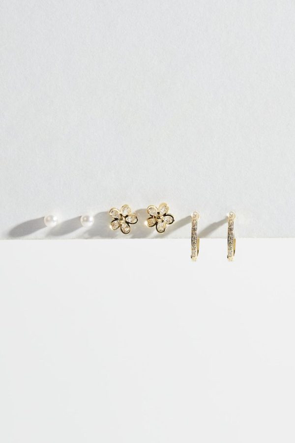 This set of earrings is the perfect, dainty set for any look! With pearl studs, sparkly flowers and delicate hoops, wear one pair at a time or mix and match!