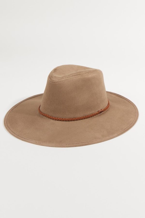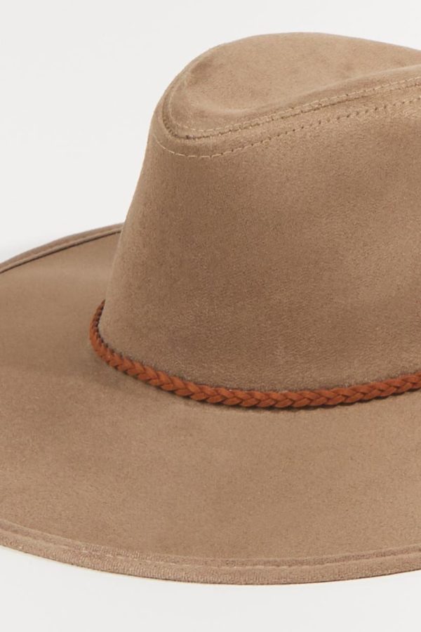 Stylish and simple – this suede hat is the perfect mix of western and chic! The soft feel of the hat is complemented by the dainty braided belt around the crown. A farmers market staple, this transitional hat pairs with anything from your go-to graphic to your favorite flannel!