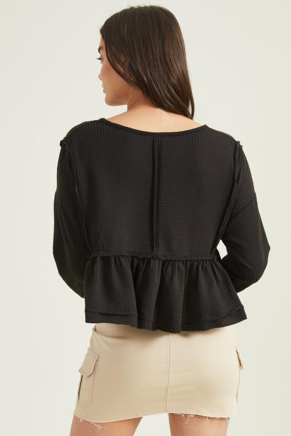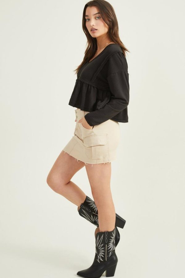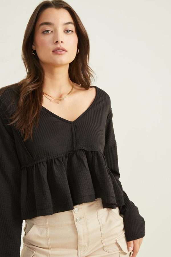 You can’t go wrong with this basic V-neck babydoll thermal! With its cropped style, it is a perfect pair with jeans and boots or layered under your favorite shacket!