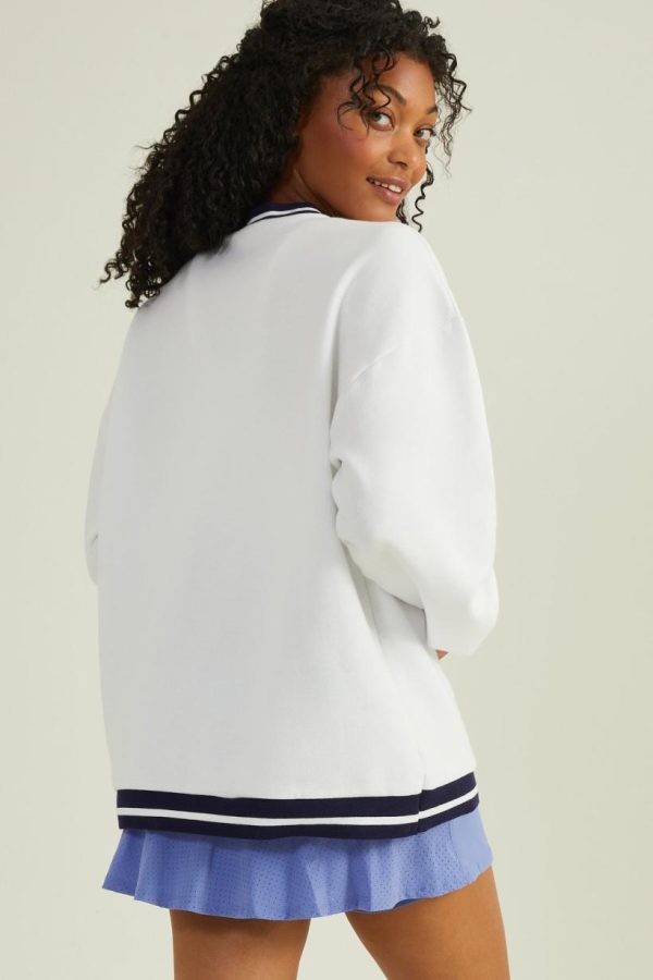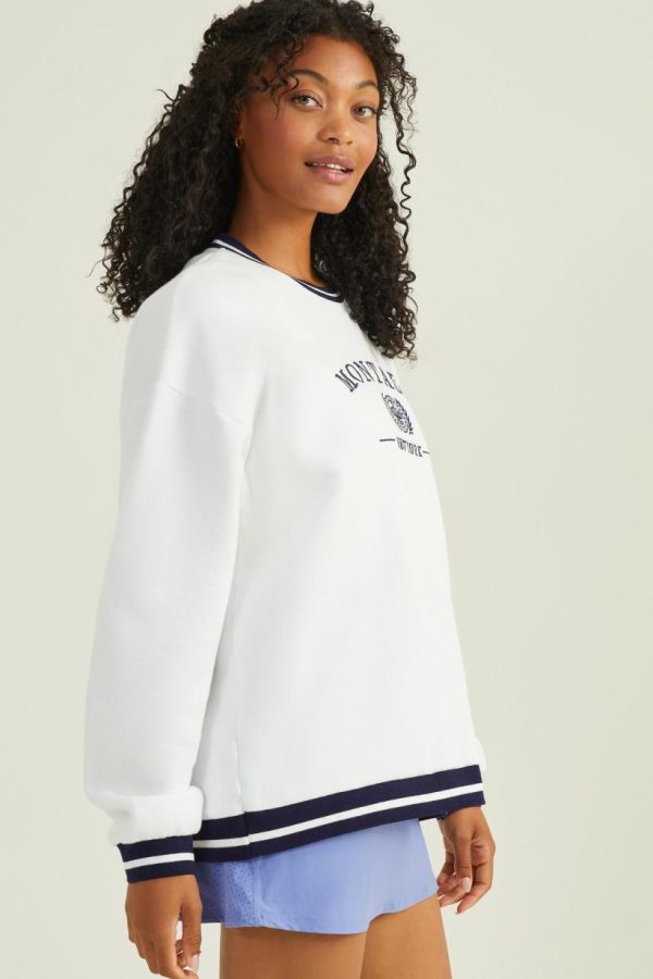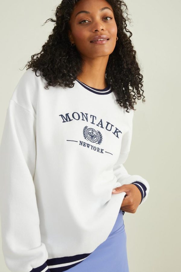 Nothing completes your preppy tennis look like this Montauk sweatshirt with the carefully crafted striped finishes and embroidered detailing. The fleece interior offers the softest feel for a cozy oversized fit you can’t resist.