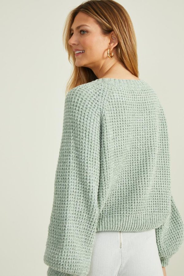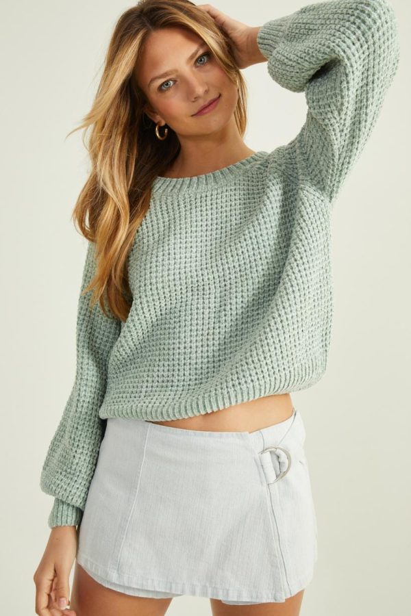 Stay cozy and stylish with our chenille sweater featuring a waffle knit texture and on trend balloon sleeves, perfect for any occasion. With its ultra-soft chenille knit, you will reach for this sweater all season long.