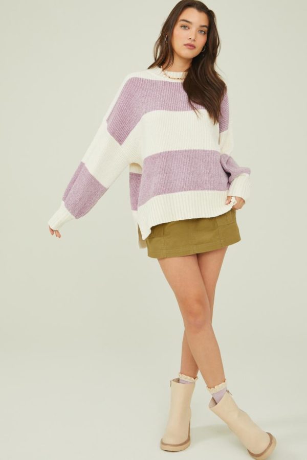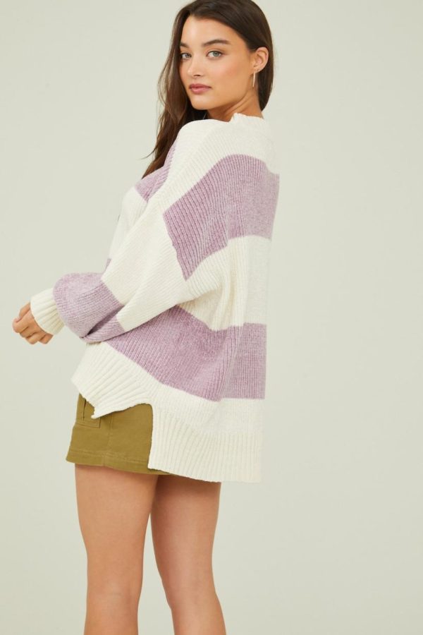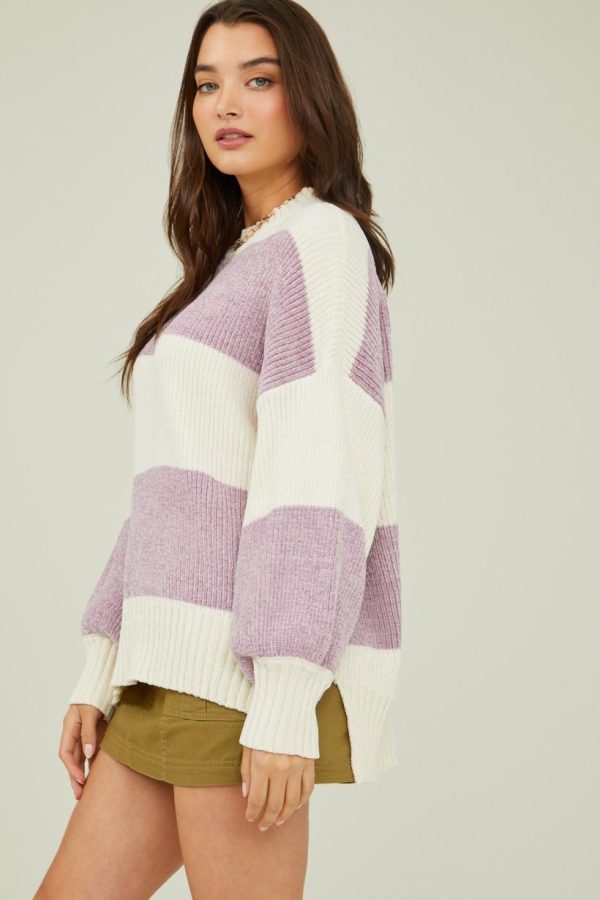 Crafted with a soft chenille touch, this sweater is complete with a roomy fit that ensures both comfort and style. The classic striped pattern adds a touch of timeless charm and makes for the perfect layering piece to stay cozy all season long.